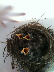 … pasaron 3 horas y no vimos a la madre sobrevolar ni acercarse a su nueva residencia. Mi compañera y yo no dejamos de visitar a cada rato el nido para ver que pasaba, el remordimiento no nos dejaba, y lo único que observábamos era como los tres críos chillaban exclamando comida, estirando el cuello y abriendo el pico.