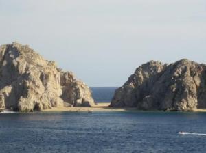 Años mas tarde invité a mi mamá a Cabo San Lucas en Baja California Sur, en México., era su cumpleaños, seria entonces la segunda punta., y la invité para que disfrutamos juntos aquellas playas que ni ella ni yo conocíamos, gozamos de una gran compañia, mi amiga Diana Ruiz quien nos dio un tour muy interesante en un lugar que los ‘lugareños’, suelen llamarlo «Land’s End» (El final de la tierra). Y así es, efectivamente admirarlo desde el avión ya era impresionante, fue así cuando nos encontrábamos exactamente en la punta, que visitaba geográficamente hablando., nuevamente esa sensación del horizonte dibujado anteriormente en España volvía a mi mente, nuevamente congele los ojos hacia el infinito imaginándome que habría mas allá…, pero lo único que alcanzaba a mirar, era el hermoso «arco», el arco natural que en ciertas épocas del año, puedes cruzar caminando cuando la marea esta baja creo este fenómeno solamente es apreciado por dos semanas al año, después, el inmenso océano Pacifico lo cubre de agua y solamente puedes cruzar el «arco» (land’s end) en lancha.